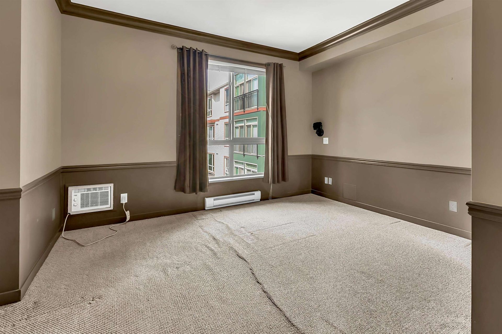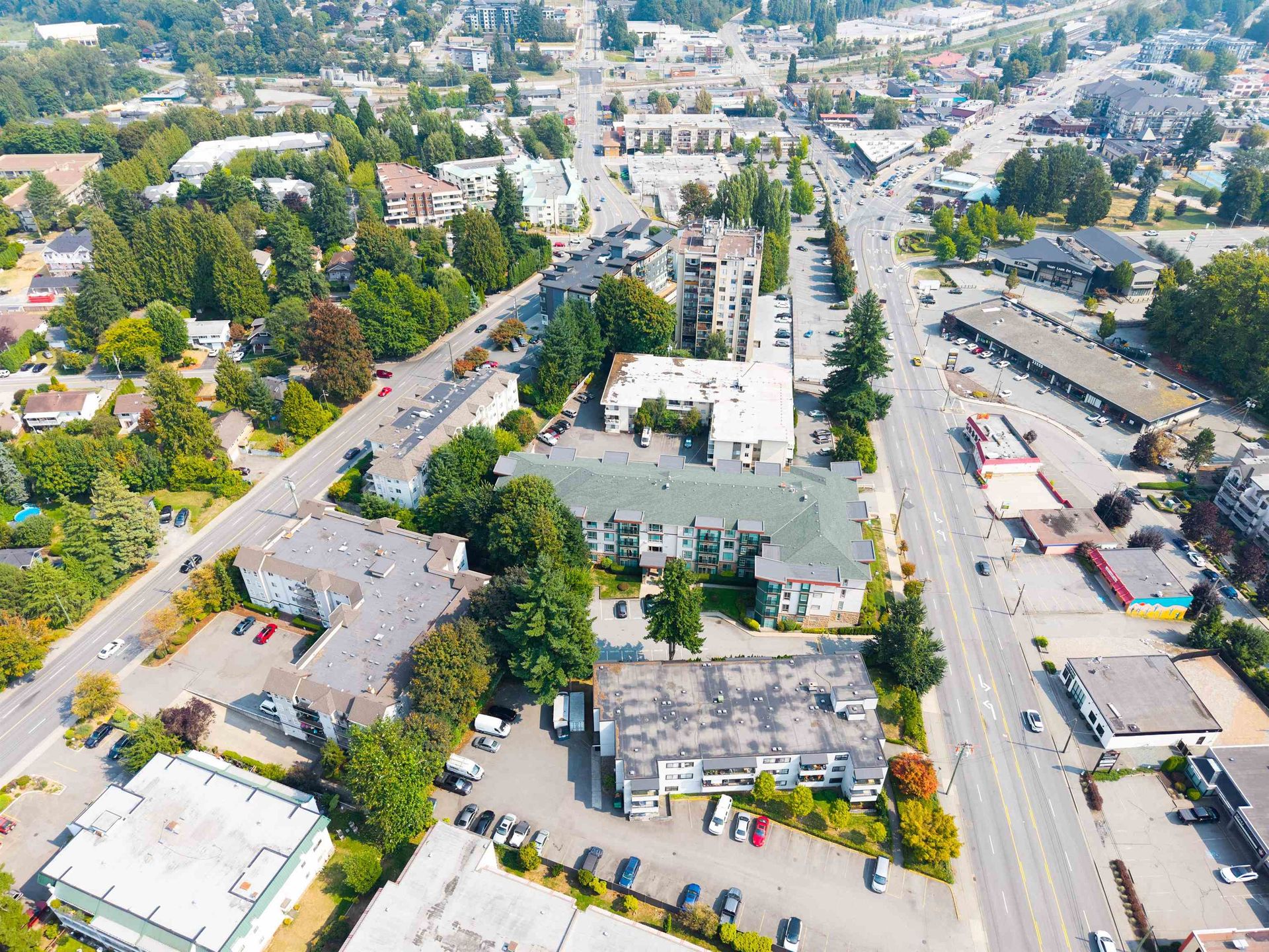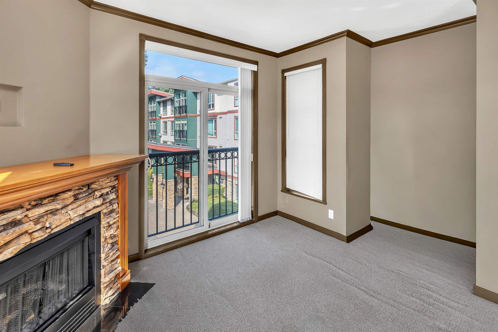 Welcome to Citadel Ridge in Central Abbotsford! Rarely available oversized END UNIT 1 Bedroom + 1 Bathroom located on the 3rd floor of this well built and secure building. Boasting 840 Sq Ft (not a typo!) this condo features a functional kitchen with granite countertops, island & window, large bedroom with AC unit and 2 closets, bathroom with double sink, shower and soaker tub, dining space, and also open living room with 2nd AC, wood mantle electric fireplace & 2 large sliding doors that also allow tons of natural sunlight to shine through. Unit also features high ceilings, hardwood floors, and arched doorways. New washer/dryer. Best of all this unit offers a oversized single car private garage and also a storage locker. Low strata fees and 1 pet allowed. Roof & gutters recently replaced!